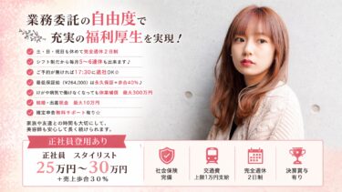 業務委託の自由度で充実の福利厚生を実現! ✅土・日・祝日も休めて完全週休2日制 ✅シフト制だから毎月5~6連休も出来ます♪ ✅ご予約が無ければ17:30に退社OK☆ ✅最低保証給 (¥264,000) は永久保証+[…]